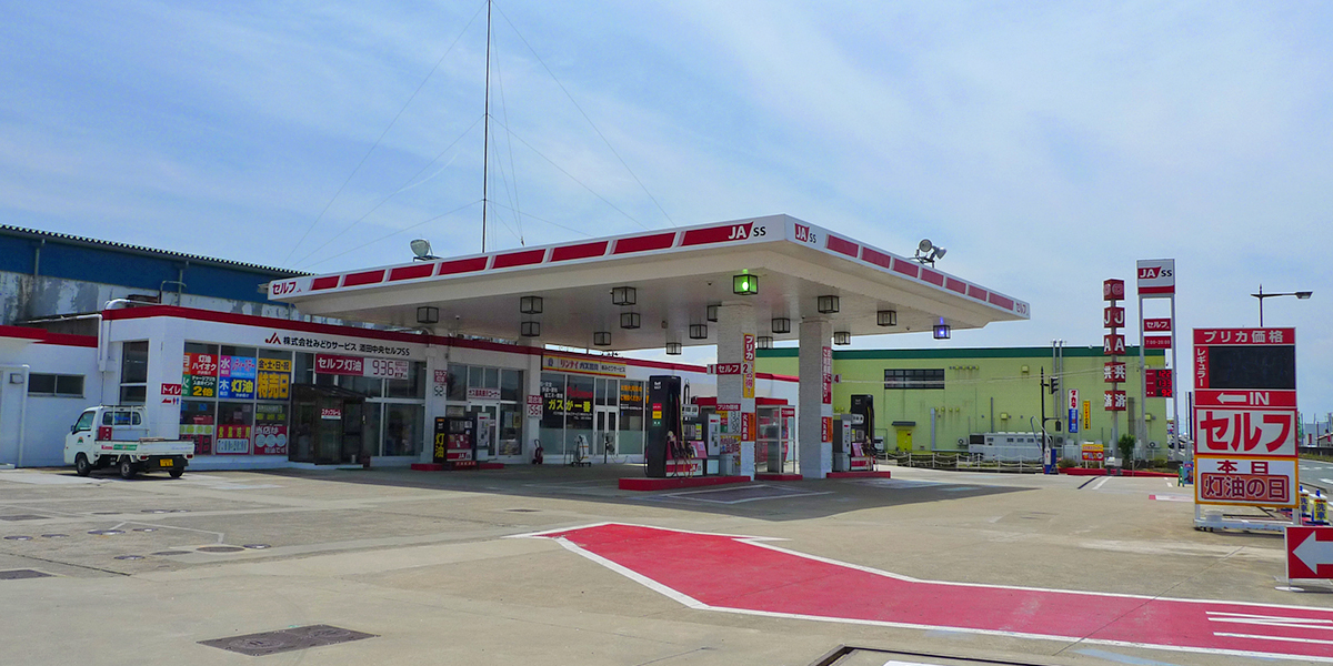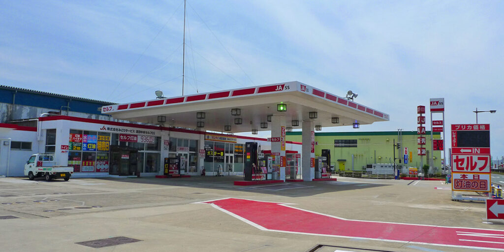 | ●セルフ給油 ●ドライブスル―洗車機 ○ふきあげタオル・コロコロ掃除セット ●ピット作業 ○オイル交換(3日前予約で粗品) ○タイヤ交換 ●タイヤ販売(4本購入で作業工賃無料) ●バキューム ●マットクリーナー(無料) ●エアータワー(無料) |