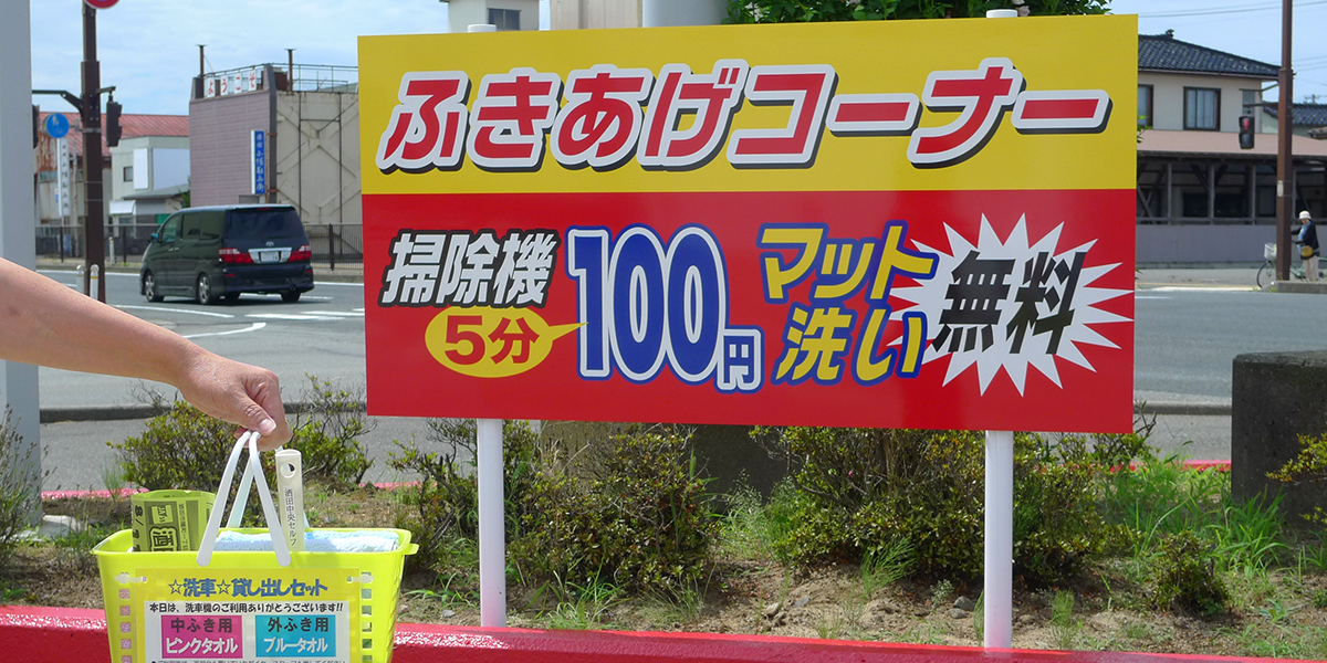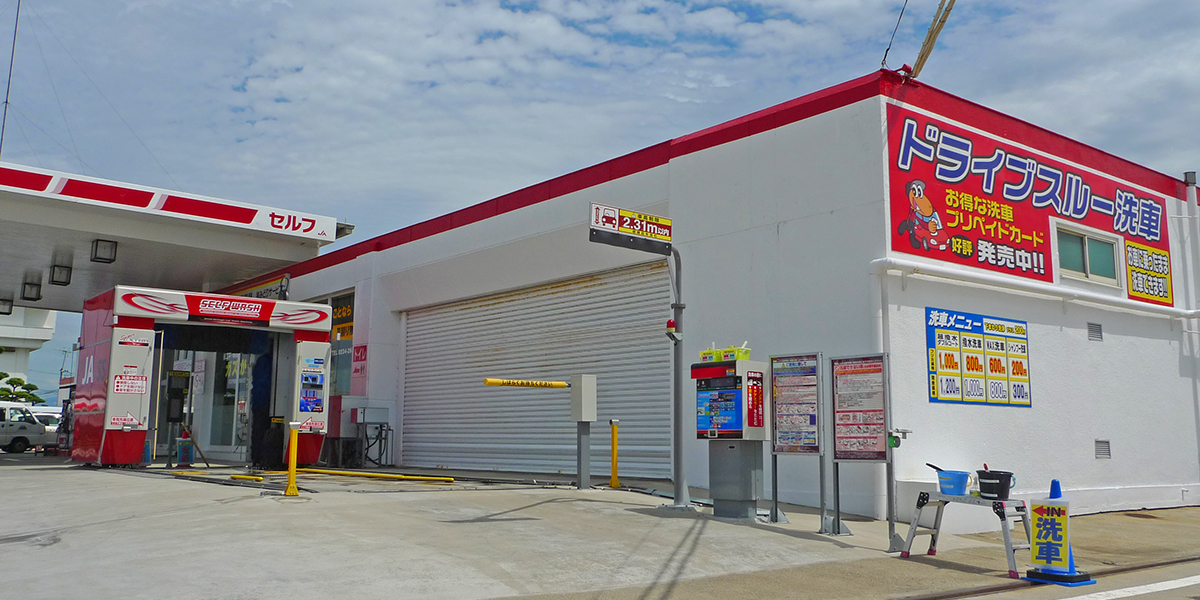 | ●セルフ給油 ●ドライブスル―洗車機 ○ふきあげタオル・コロコロ掃除セット(無料貸し出し) ●バキューム ●マットクリーナー(無料) |