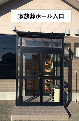 ・家族葬ホール出入口はホール右奥(ポンプ小屋方向)になります。